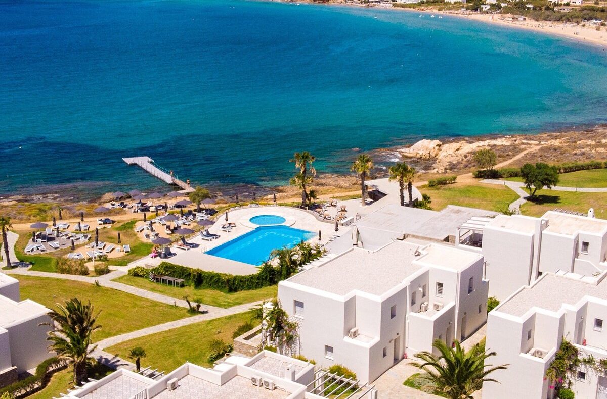 Located in a scenic area amidst the crystal-clear waters of the Aegean sea and the blue cobalt sky, the Poseidon of Paros Hotel & Suites embraces the unique style and the striking architecture of the Cyclades. This Paros Hotel is located on the unique Golden beach (Chrissi Akti), 10 km from the airport and 25 km from the port. Poseidon of Paros island hotel lays only a breath away from the sandy Golden Beach. Within 45.000 m2 of unspoiled beauty at the Golden beach of Paros Island in Greece, the 5 star Poseidon luxury Paros Hotel & Spa exudes serenity and peacefulness in the most picturesque of settings!